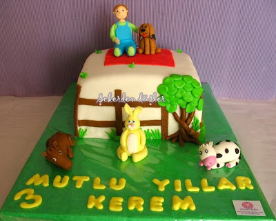 Kerem'in 3 yaş doğum gününde annesi çiftlik temalı bir pasta istedi bizden. Üzerindede en sevdiği hayvanların olmasını istedi. Bu pastanın modelinde Sevgili Işıl'ın derslerinde yaptırdığı modelden ve Nilgün'ün yaptığı modelden faydalandık. Her ikisinde teşekkür ediyoruz.
